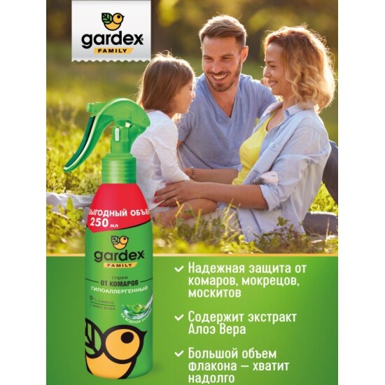 Купить Спрей репеллентный от комаров "Gardex Family", с алоэ вера, 250 мл./В упаковке шт: 1