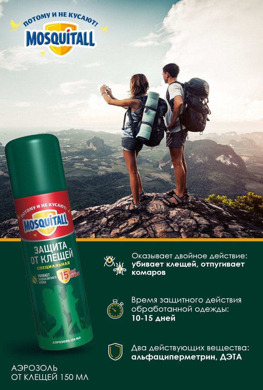 Аэрозоль "Mosquitall", от клещей, 150 мл