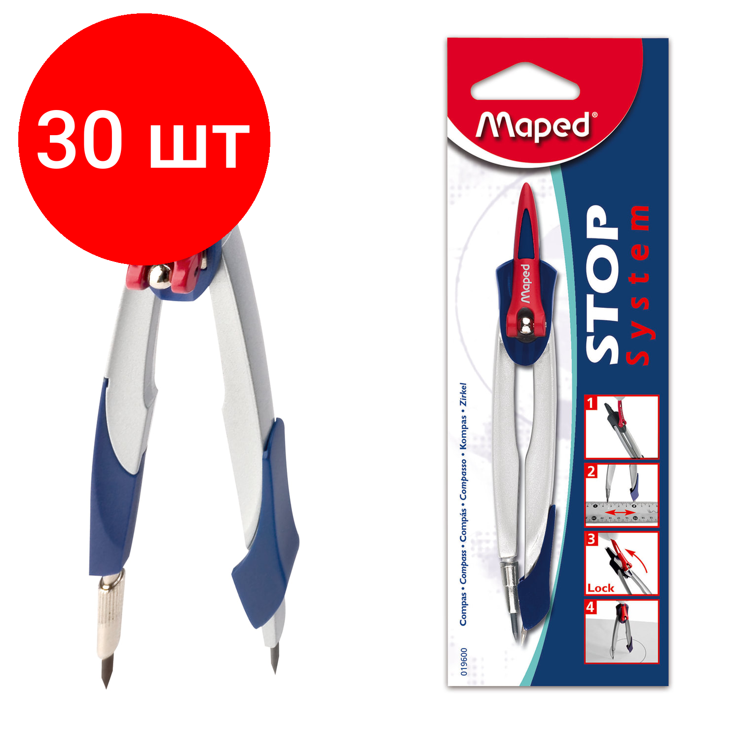Купить Комплект 30 шт, Циркуль MAPED"Stop System", 130 мм, металлический, грифель 2 мм, блистер, 019600