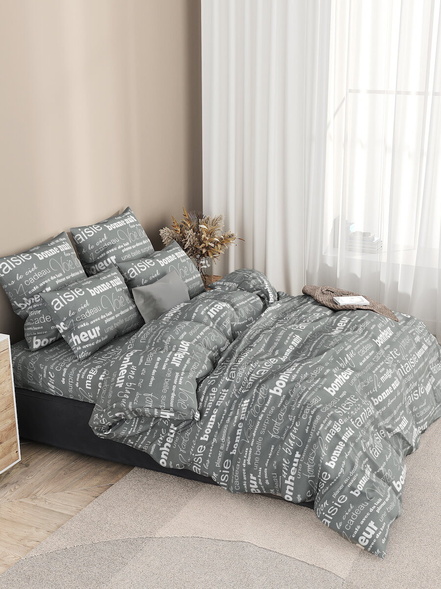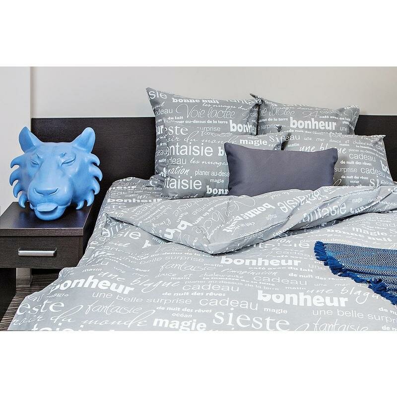 Комплект постельного белья Ночь Нежна Письма, 2-спальное с европростыней, бязь, серый