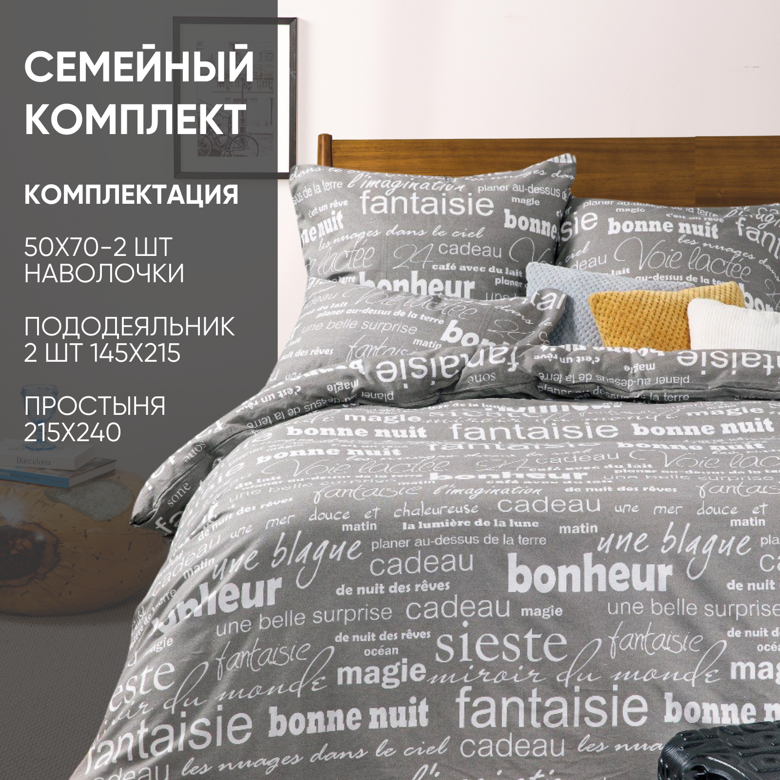 Комплект постельного белья Ночь Нежна Письма, семейное, бязь, серый