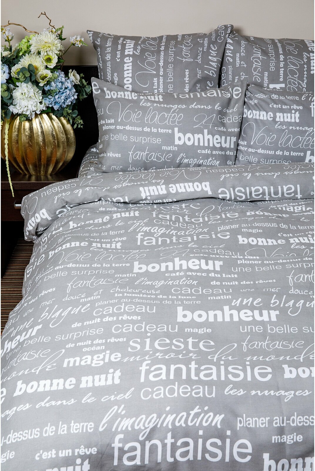 Комплект постельного белья Ночь Нежна Письма, 2-спальное с европростыней, бязь, серый