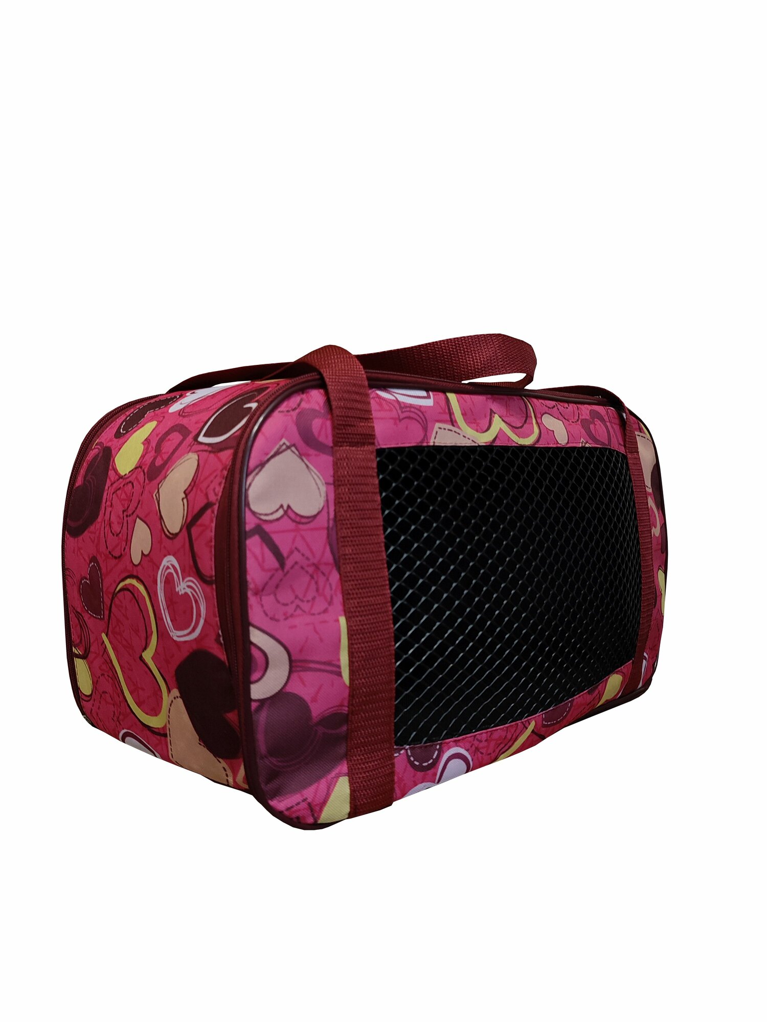 Сумка переноска для кошек собак животных Теремок СПО-3_разноцветные сердца принт "сердце", 45*22*30 см.