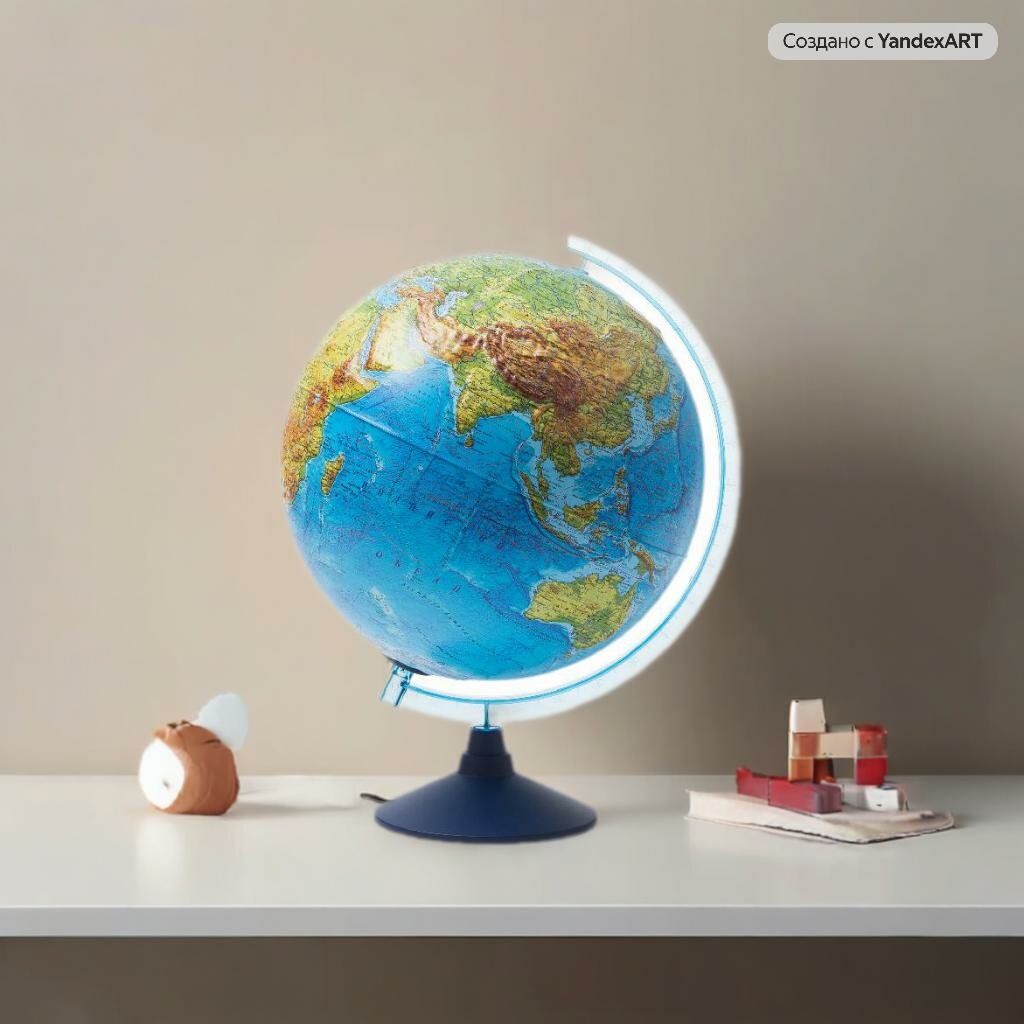 Глобусы-светильники Глобен Глобус физико-политический "Глобен", интерактивный, диаметр 320 мм, с подсветкой от батареек, с очками