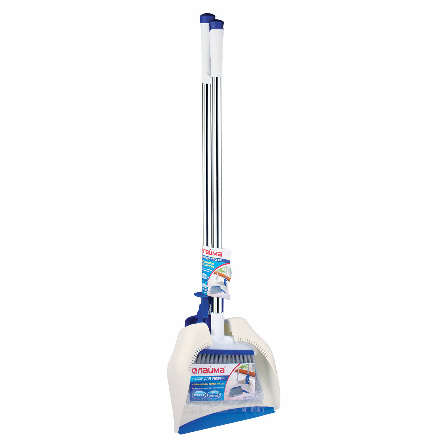 Совок для мусора LAIMA со щеткой-сметкой, комплект 2 шт., механический сбрасыватель, ручка 67 см, резиновая кромка, для дома и офиса, 601473
