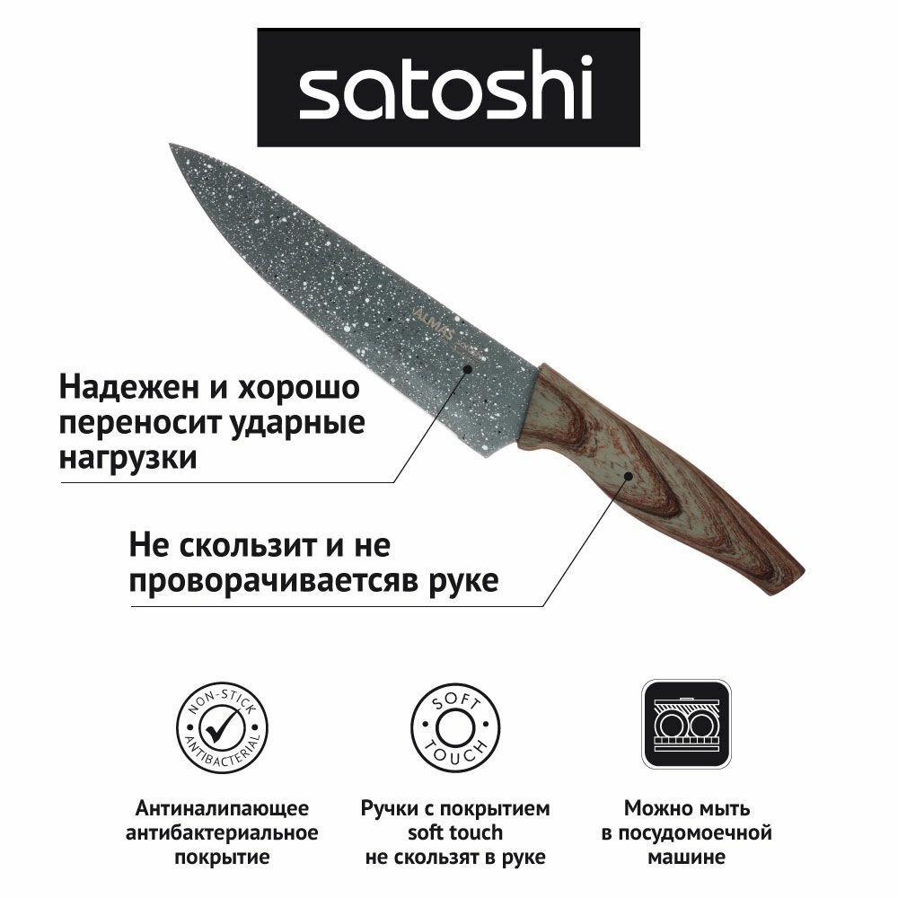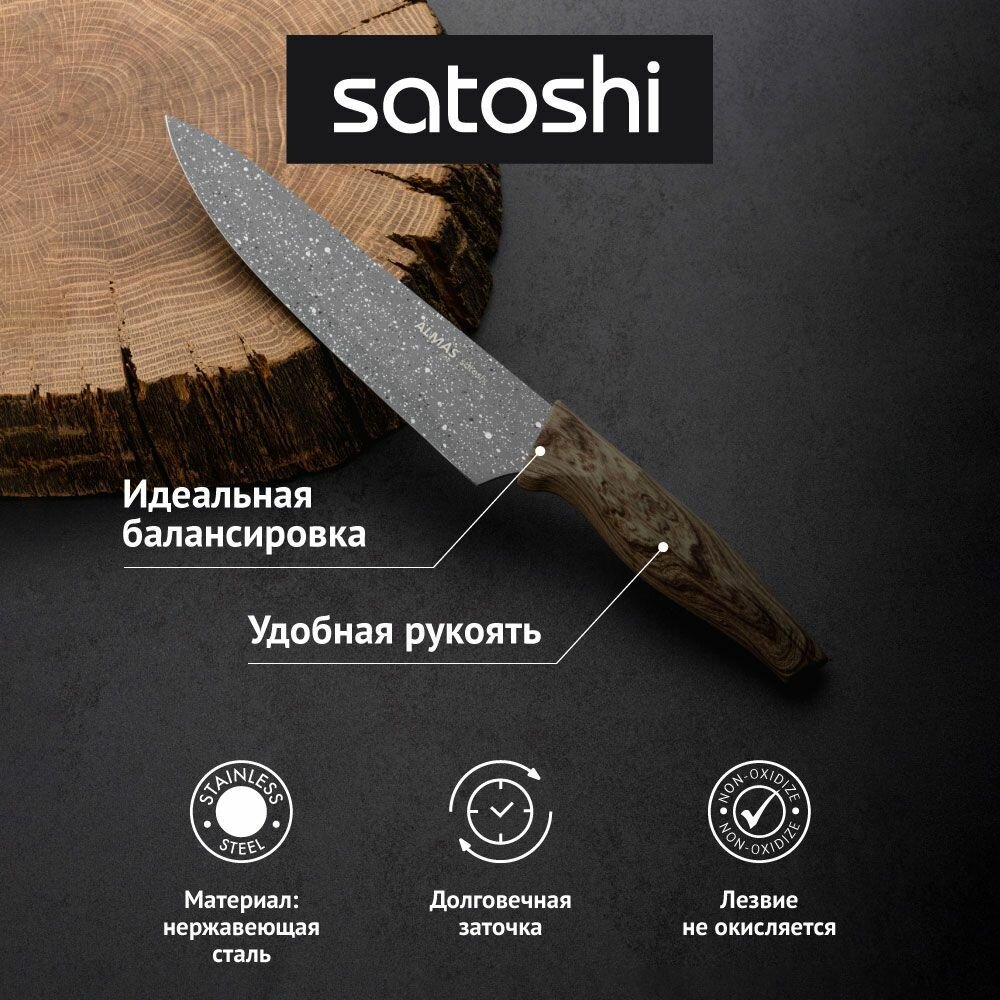SATOSHI Алмаз Нож кухонный шеф 20см, нерж.сталь с антиналипающим покрытием