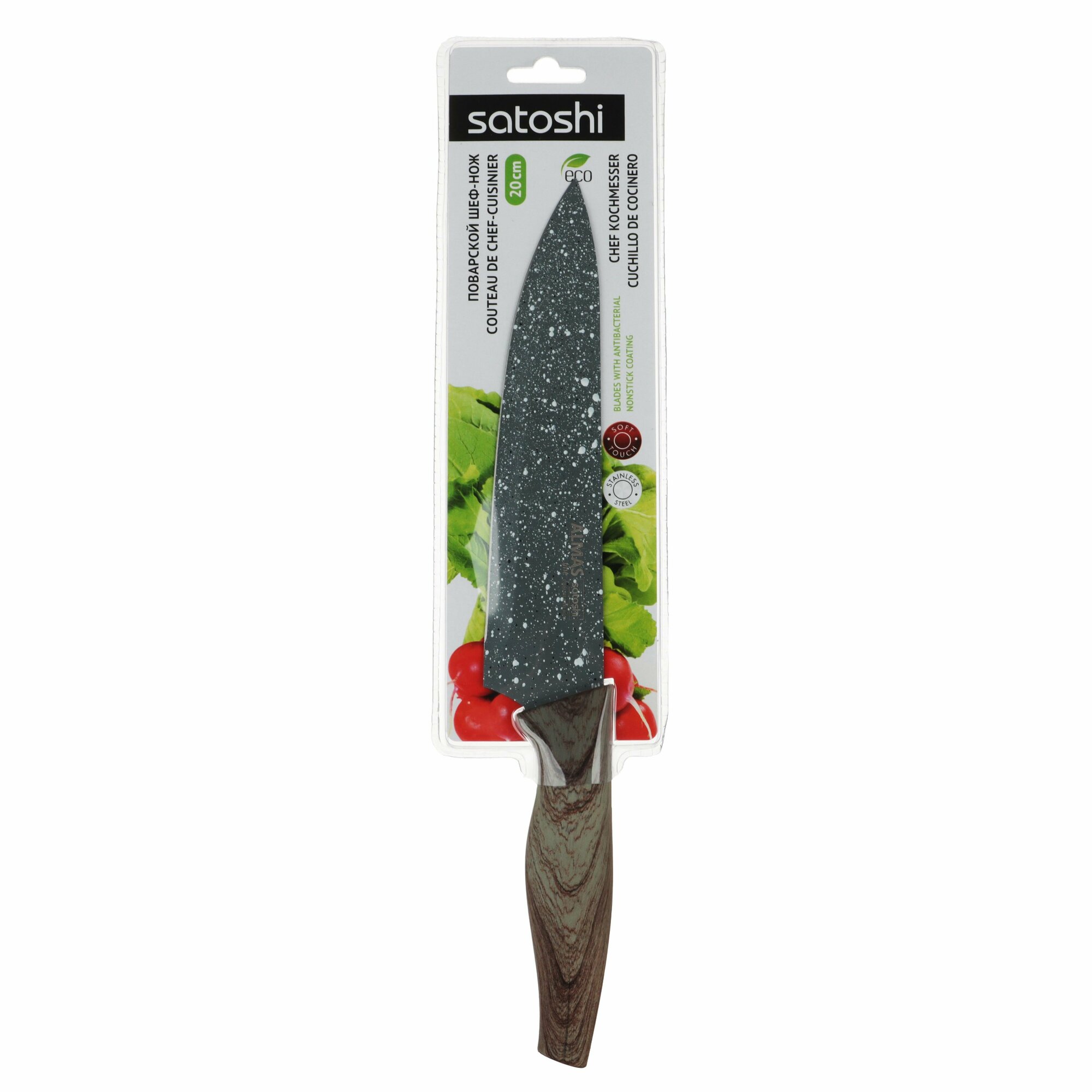 Нож кухонный 20см шеф SATOSHI "Алмаз" антиналип. покр. (нержавеющая сталь)