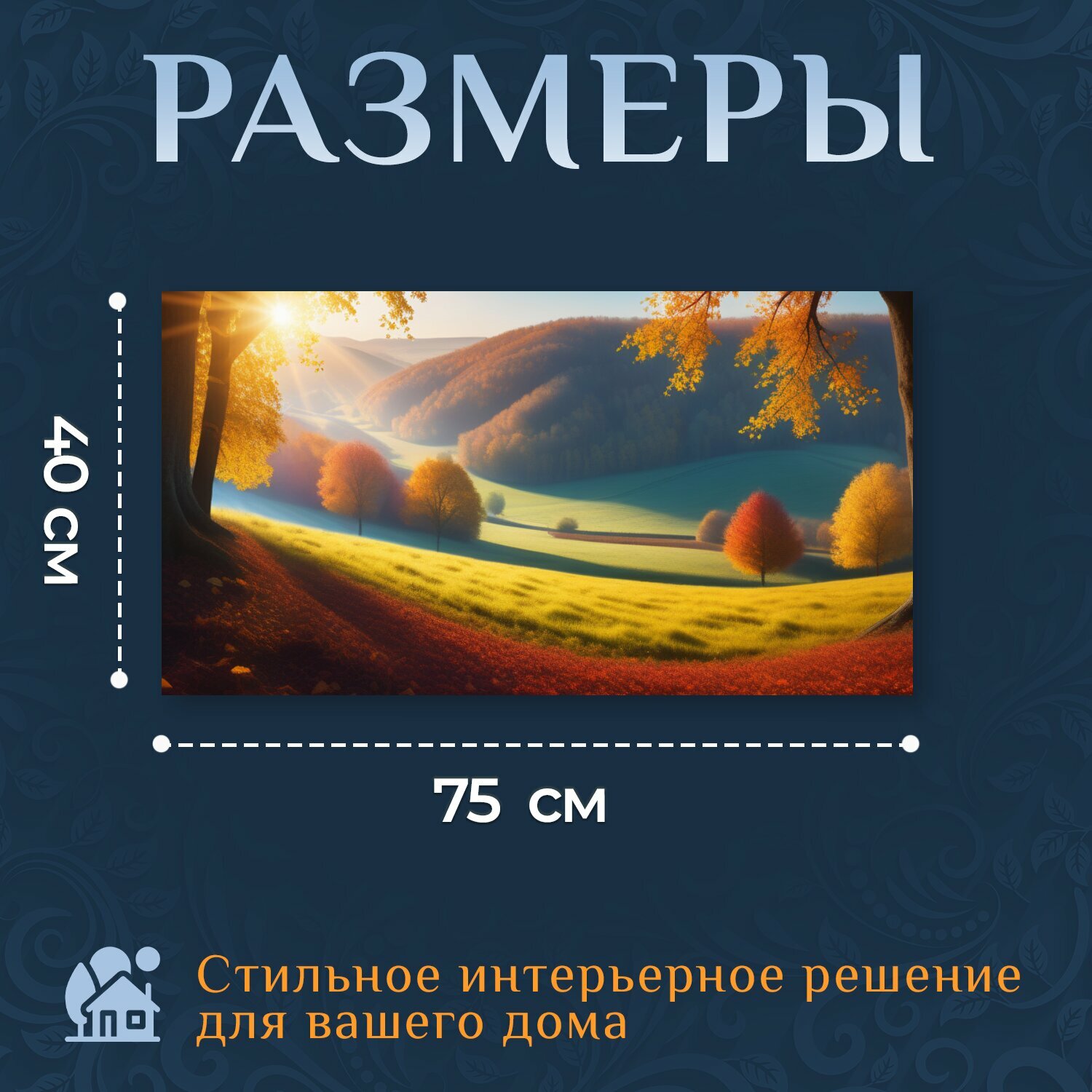 Картина на холсте "Осень пейзаж с фото, " на подрамнике 75х40 см. для интерьера интересное: