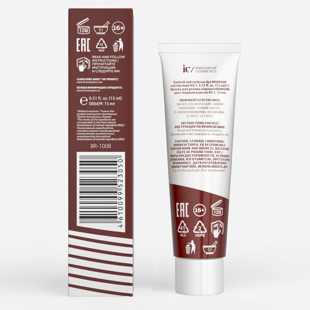 Краска Bronsun для ресниц и бровей, обновленная версия, тон 4.1 медный каштан, 15 мл