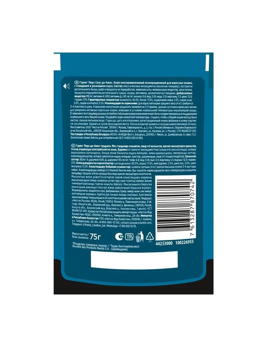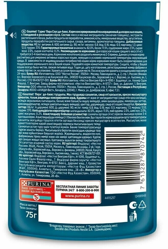СохранитьГурмэ Перл Соус Де-люкс влажный корм для кошек, с говядиной в роскошном соусе - 75 г х 26 шт интересное: