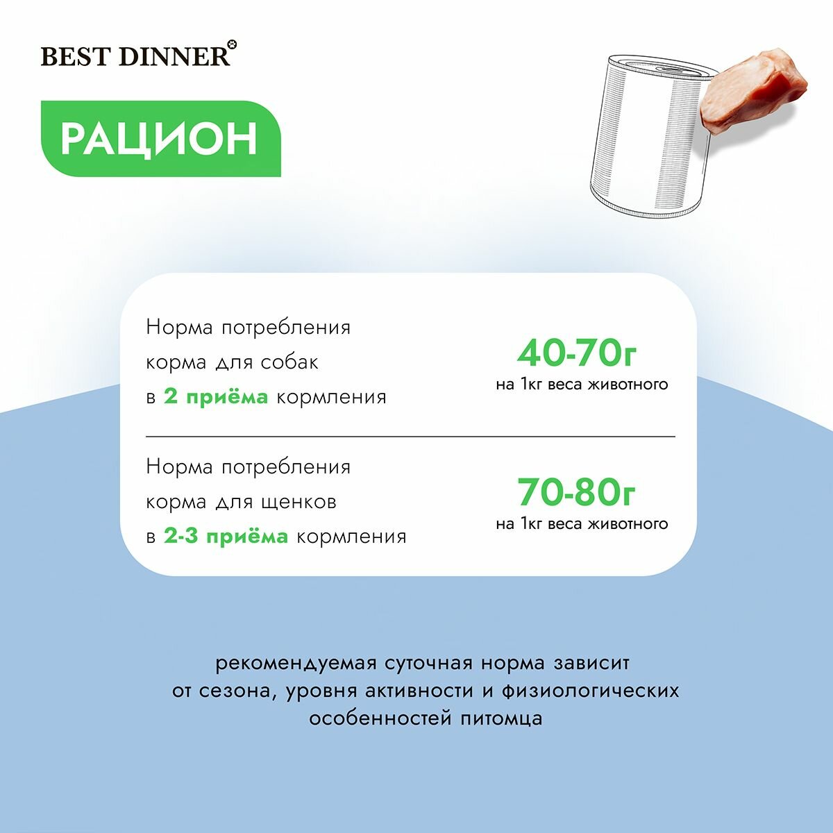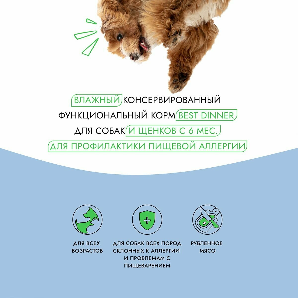 Консервы Best Dinner Exclusive Hypoallergenic для взрослых собак и щенков с 6 мес Профилактика пищевой аллергии с индейкой и кроликом 340г 7635
