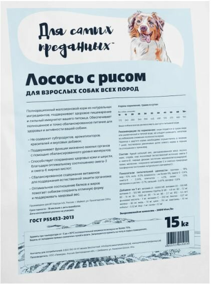 Для самых преданных сухой корм для взрослых собак всех пород лосось с рисом 15 кг