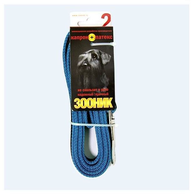 Поводок для собак 15 мм Зооник капроновый с латексной нитью синий 2 м (1 шт)