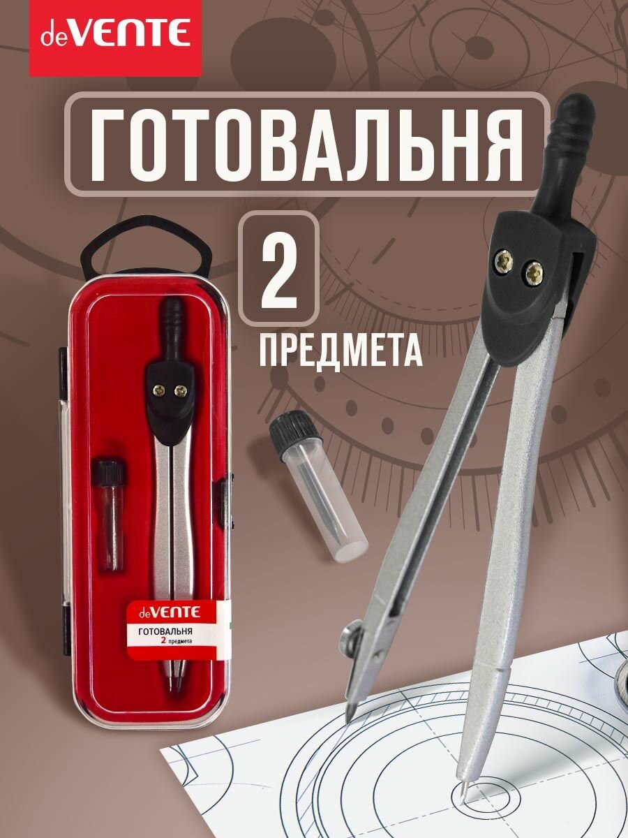 Готовальня deVENTE Металл, пластик, 5 предметов, в пластиковом футляре, красный ложемент