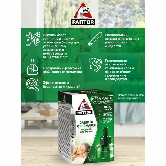 Раптор Жидкость от комаров повышенной эффективности