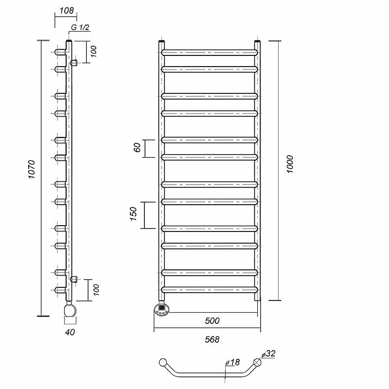 Полотенцесушитель электрический Domoterm Лаура П12 500х1000 EL