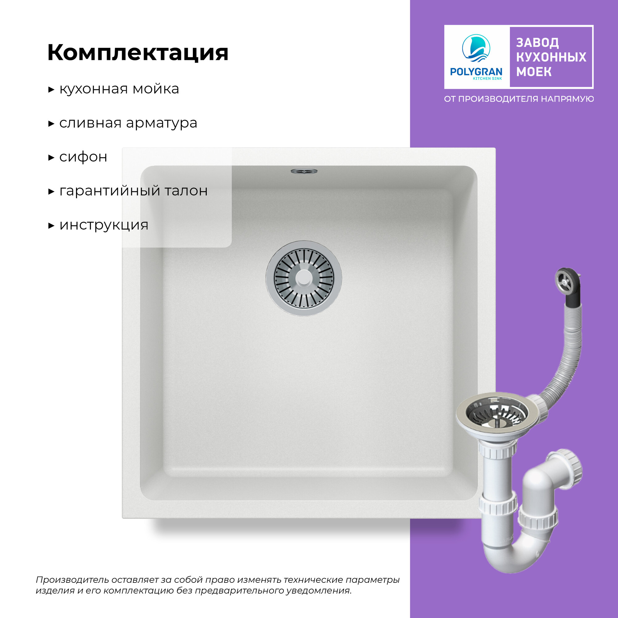 Мойка кухонная квадратная Tolero Classic R-128 белый (473233)