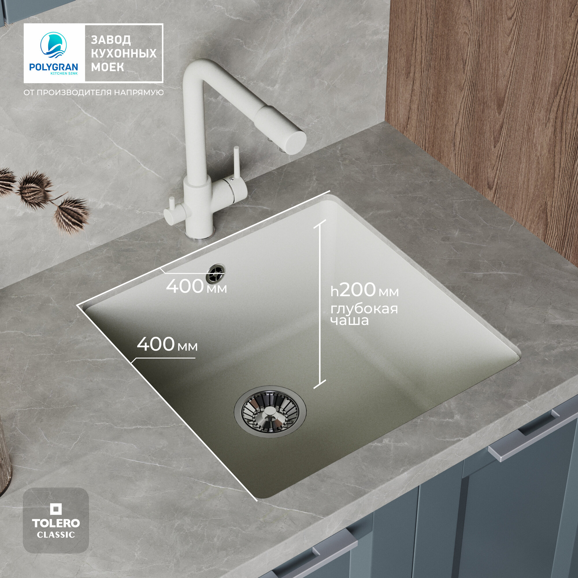 Кухонная каменная мойка 46x46 TOLERO Classic R-128 бежевая