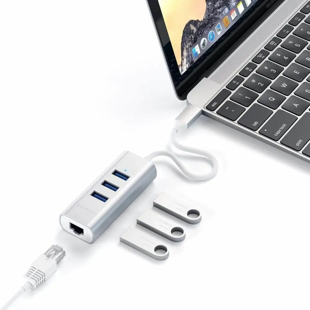 Многопортовый адаптер Satechi ST-TC2N1USB31A (3 USB-A 3.0, Gigabit Ethernet) Серебристый / Silver