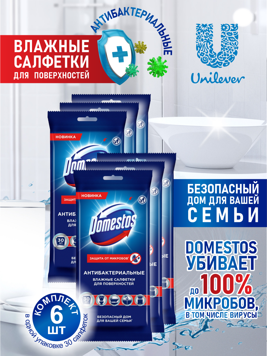 Купить Domestos Влажные салфетки для очищения поверхностей антибактериальные 30 шт./упак. х 6 шт.