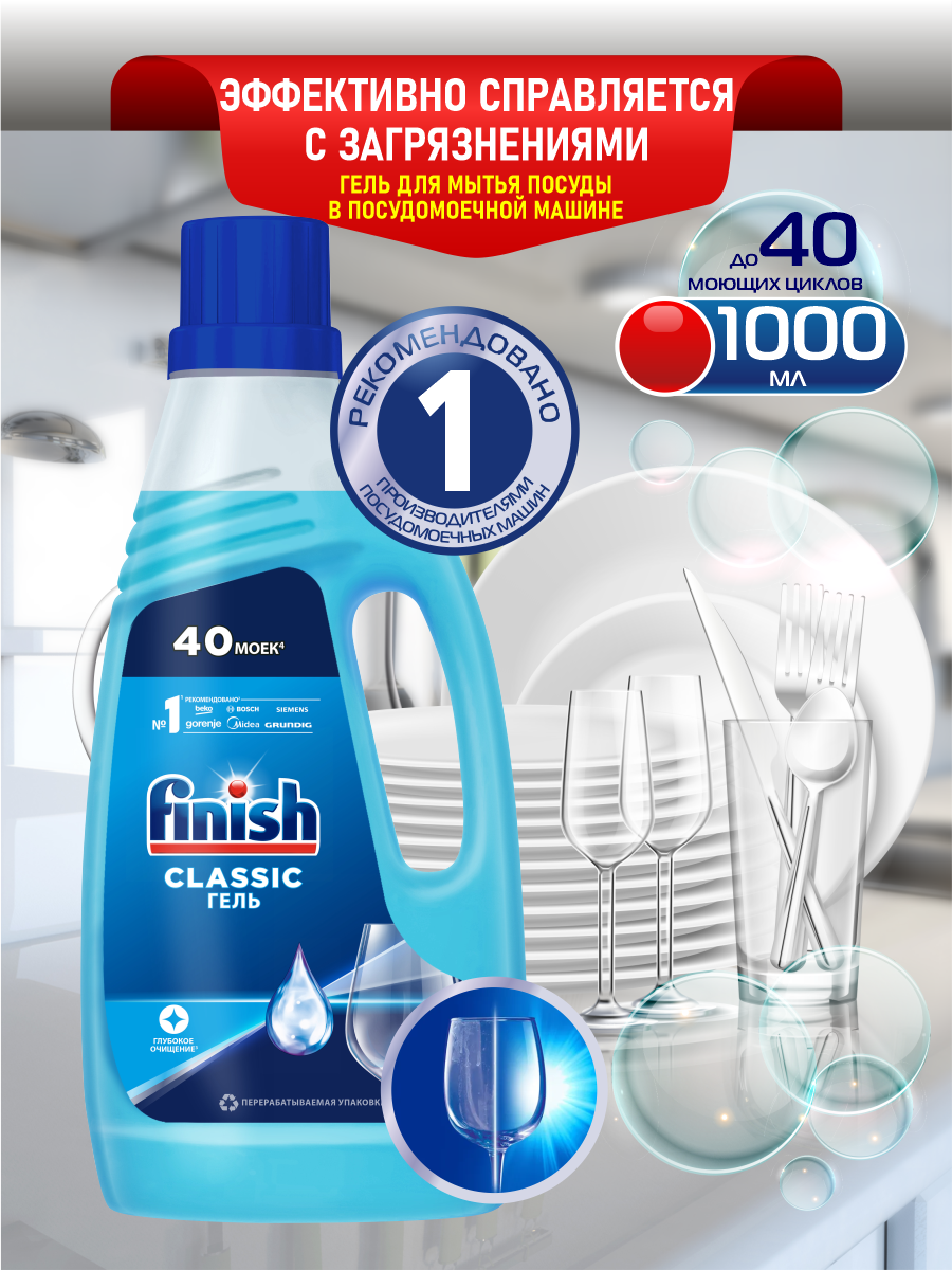 Гель для посудомоечной машины Finish Classic, универсальный, без запаха, 1 л