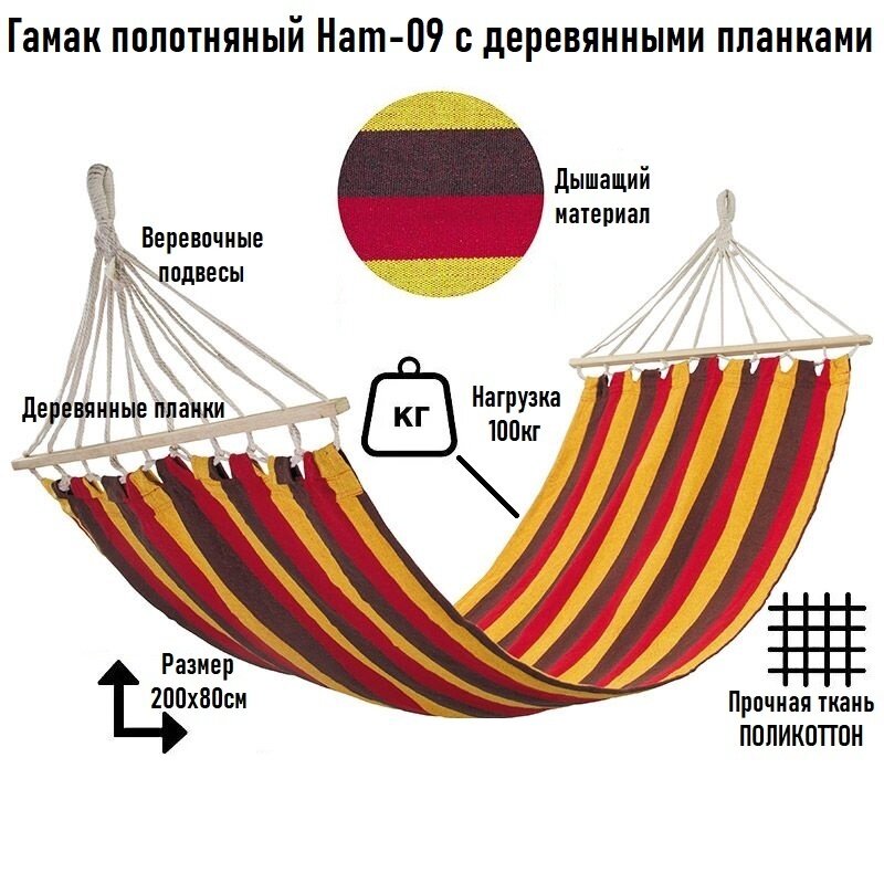 Гамак полотняный Ham-09 с деревянной планкой, 200х80 см