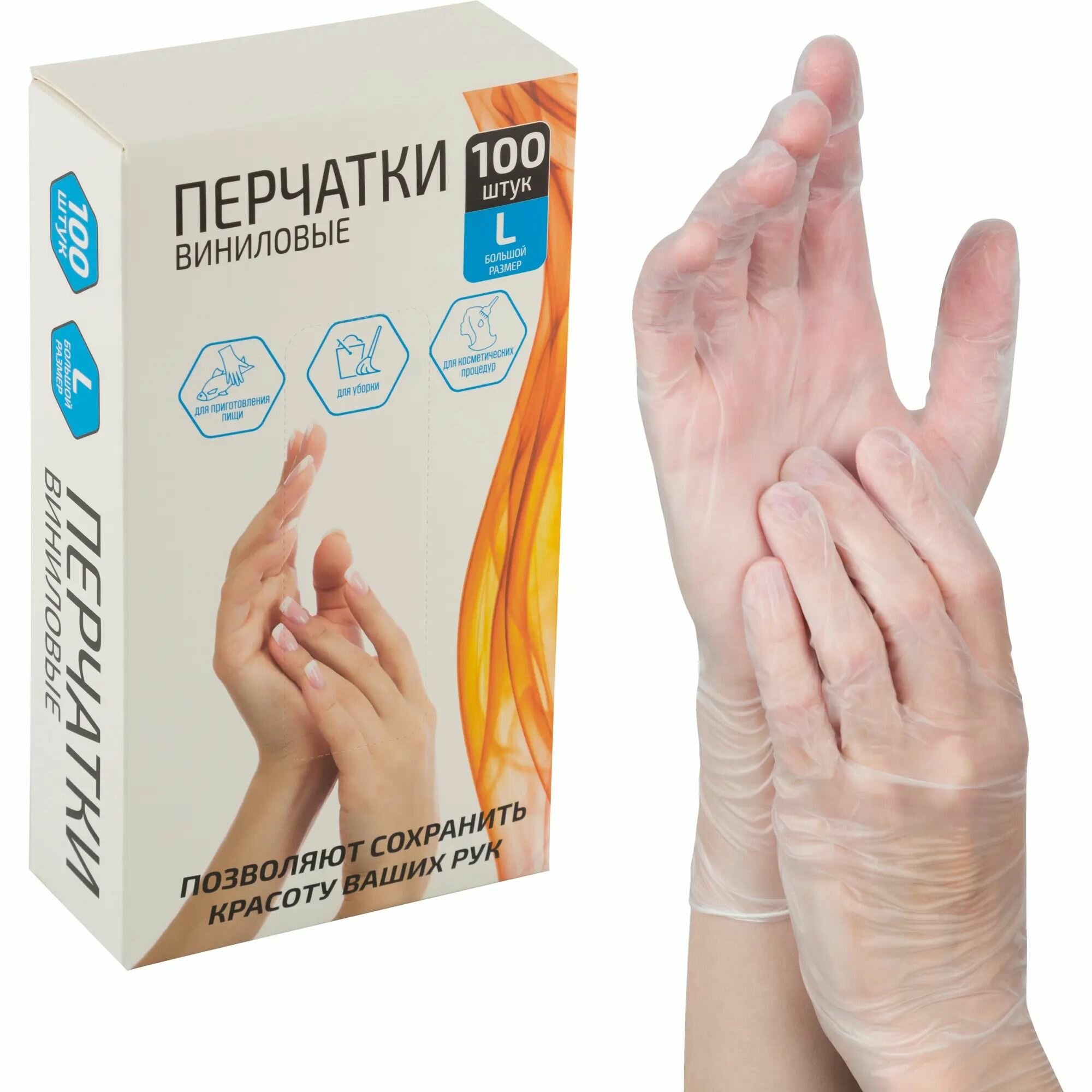 Перчатки хозяйственные виниловые, неопудренные, размер L, 100 шт. в боксе