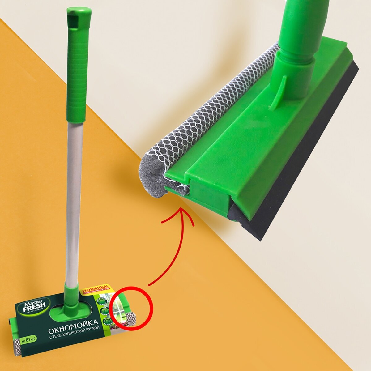 Швабра для мытья окон Master Fresh с губкой и сгоном рабочая часть 25 см телескопическая рукоятка 52-81 см, 1176978