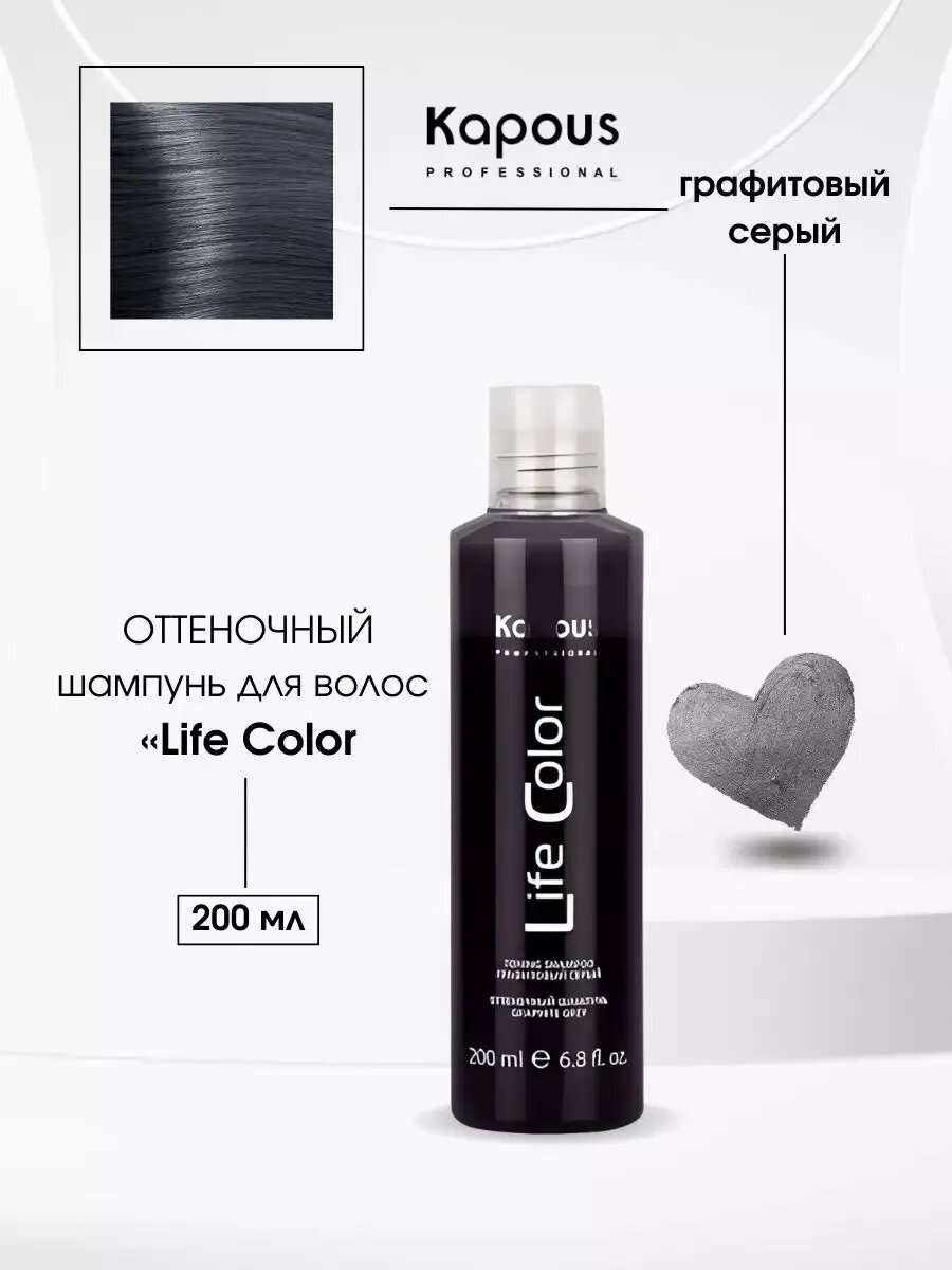 СохранитьОттеночный шампунь для волос Kapous «Life Color», графитовый серый, 200 мл интересное: