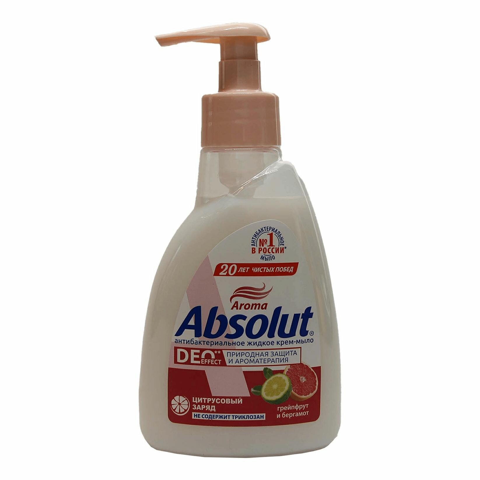 Крем-мыло жидкое (DEO effect) антибактериальное грейпфрут и бергамот ТМ (Абсолют) / бытовая химия/ антибактериальное жидкое мыло/ ультразащита/ для чистоты рук