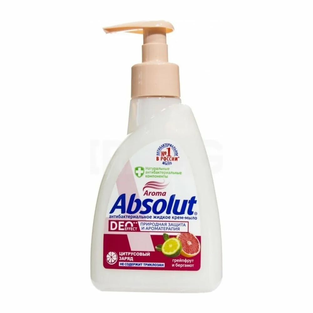 Absolut Крем-мыло жидкое Absolut DeoEffect Грейпфрут и бергамот, Антибактериальное 250 мл