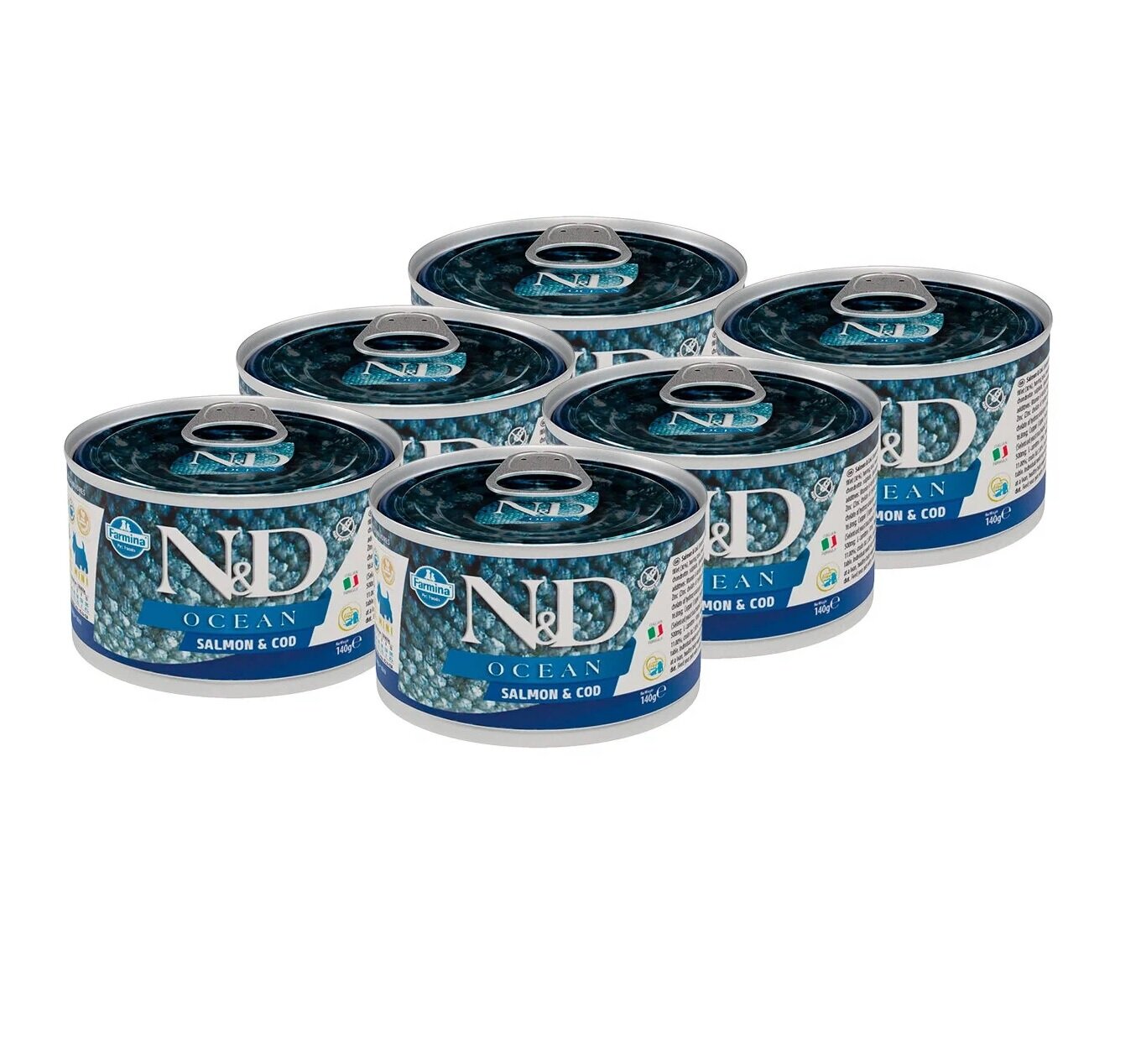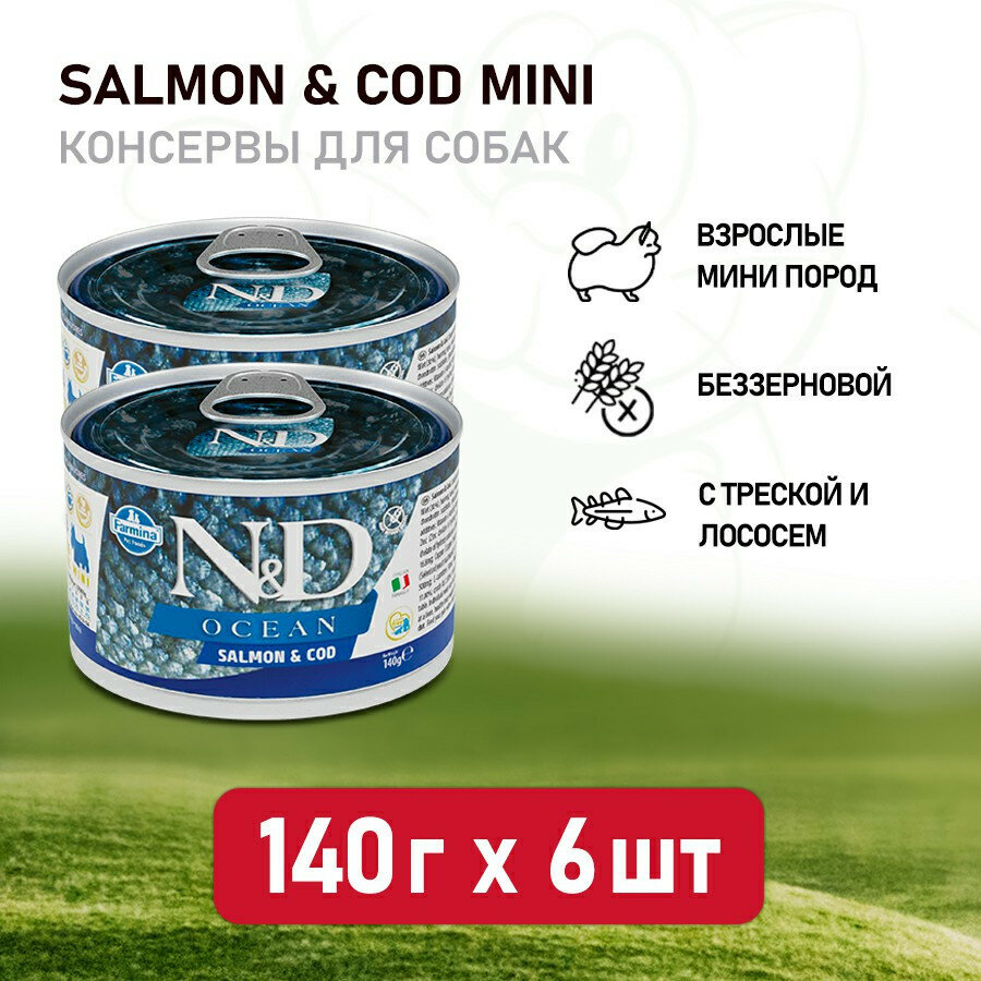 Корм Farmina N&D OCEAN Salmon & Cod (консерв.) для собак, лосось с треской, 140 г x 6 шт