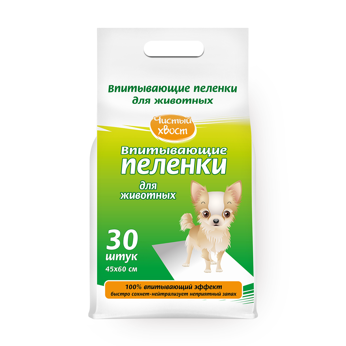 Чистый хвост пеленки впитывающие для животных, 60 х 45 см (30 шт)
