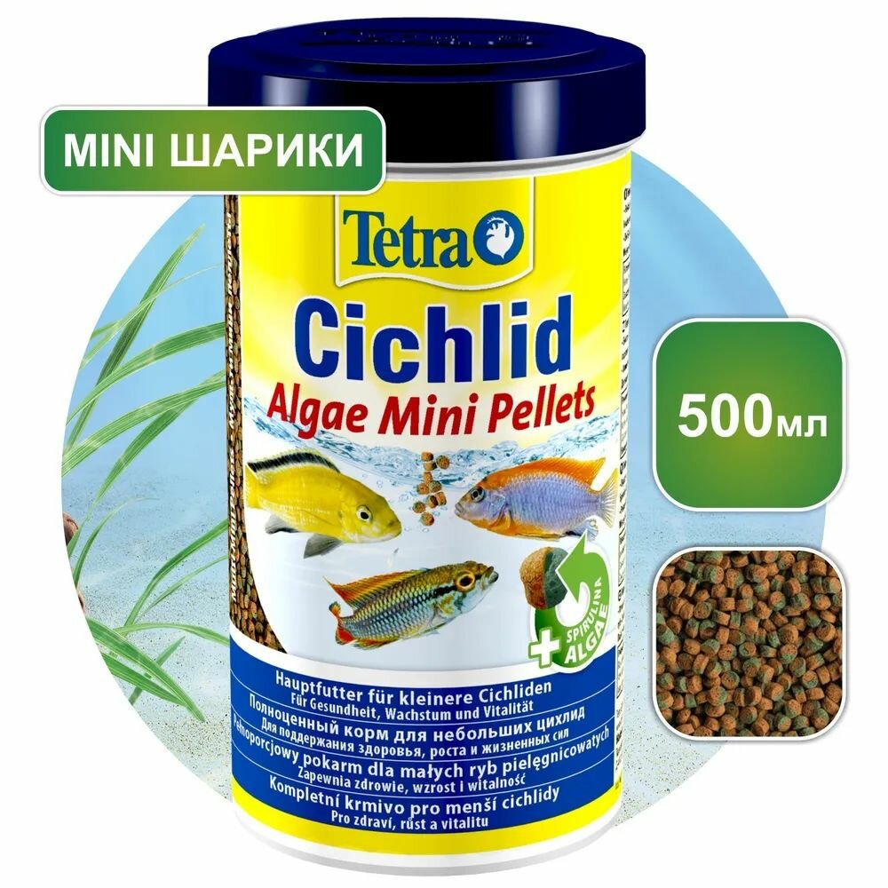Корм Tetra Cichlid Algae Mini Pellets 500 мл, мини-шарики для небольших цихлид, со спирулиной