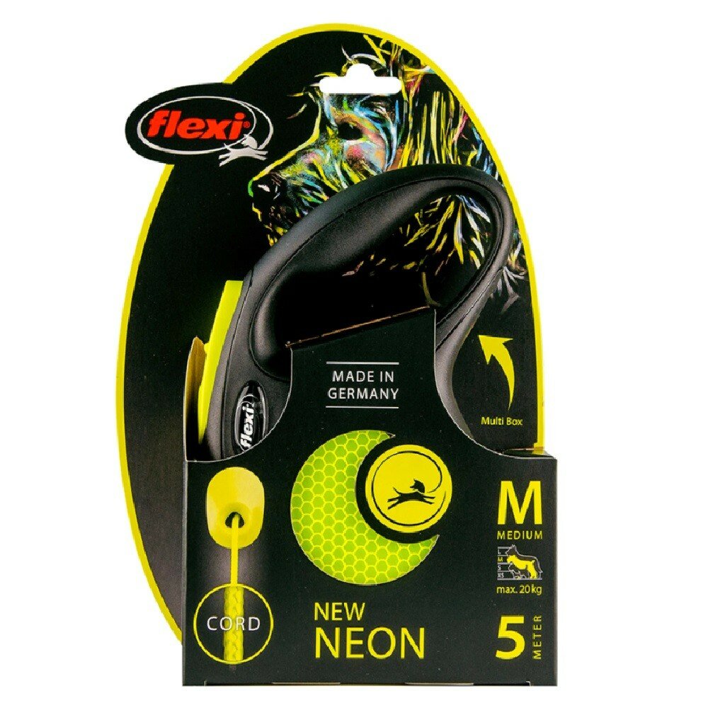 Flexi New Neon M Рулетка для собак весом до 25кг длинна 5м с ремнём