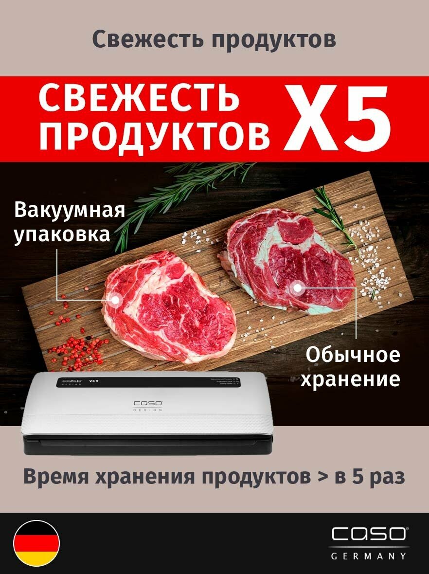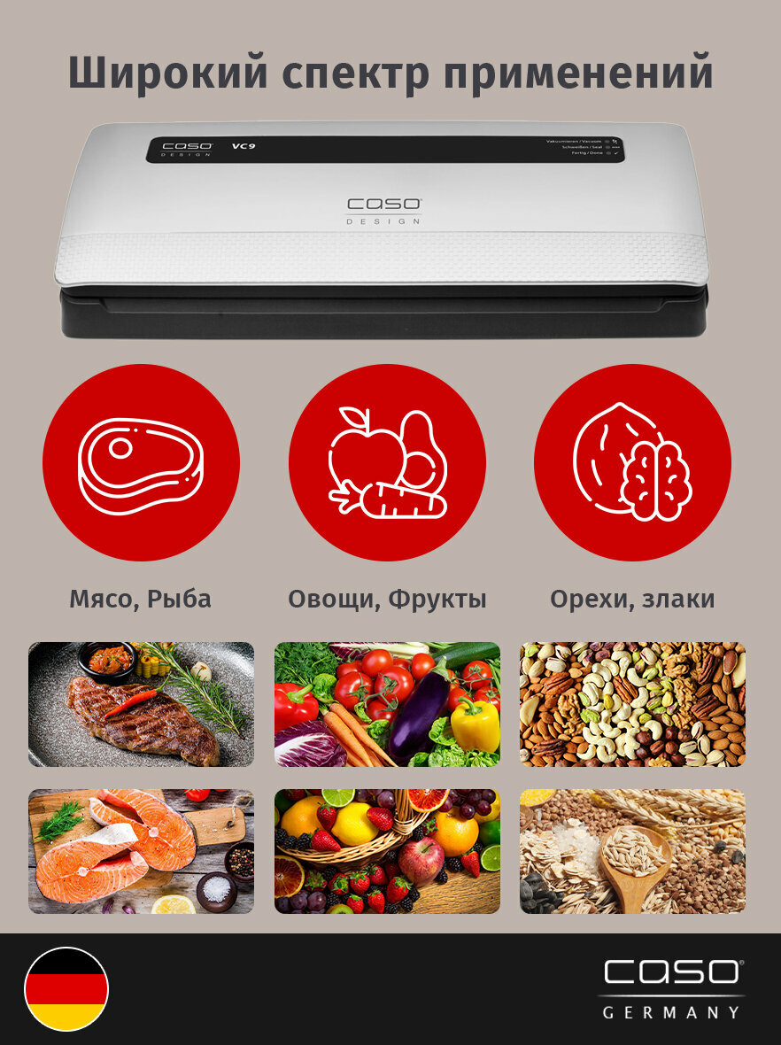Вакуумный упаковщик для продуктов вакууматор CASO VC9, серебристый/черный интересное: