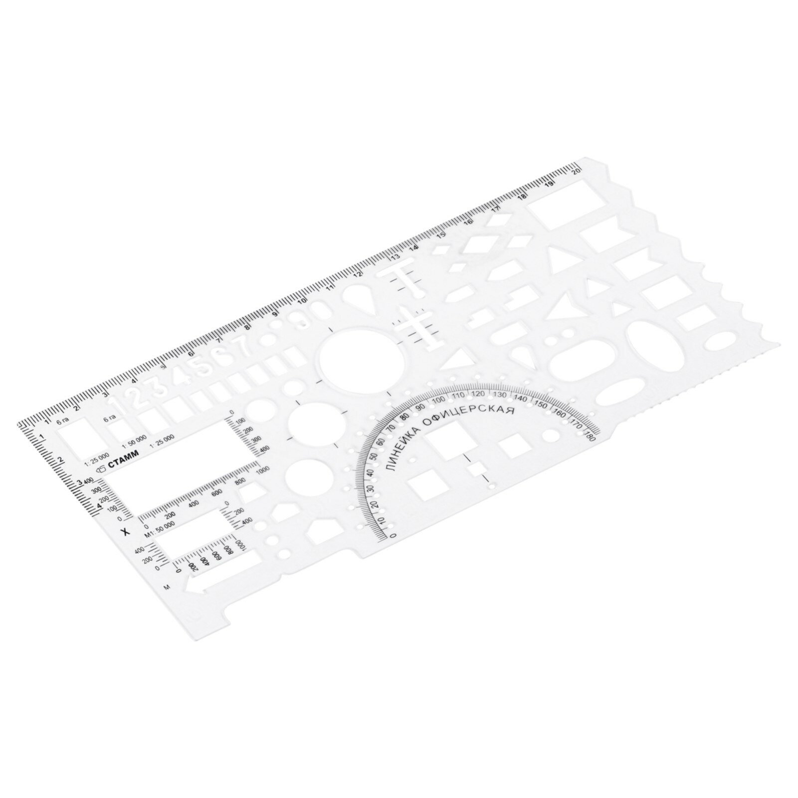 Линейка офицерская СТАММ 20 см, №2 (командирская), прозрачная, 65 тактических элементов, печатная шкала (ТТ03)