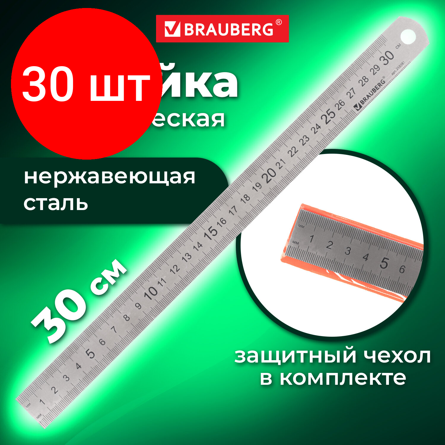 СохранитьКомплект 30 шт, Линейка металлическая 30 см, BRAUBERG, европодвес, 210381 интересное: