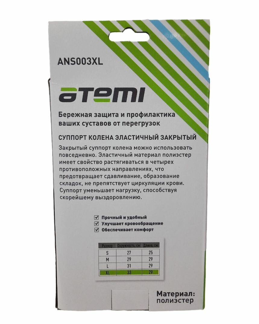 Суппорт колена ATEMI , ANS003XL, эластичный, закрытый, полиэстер, размер XL