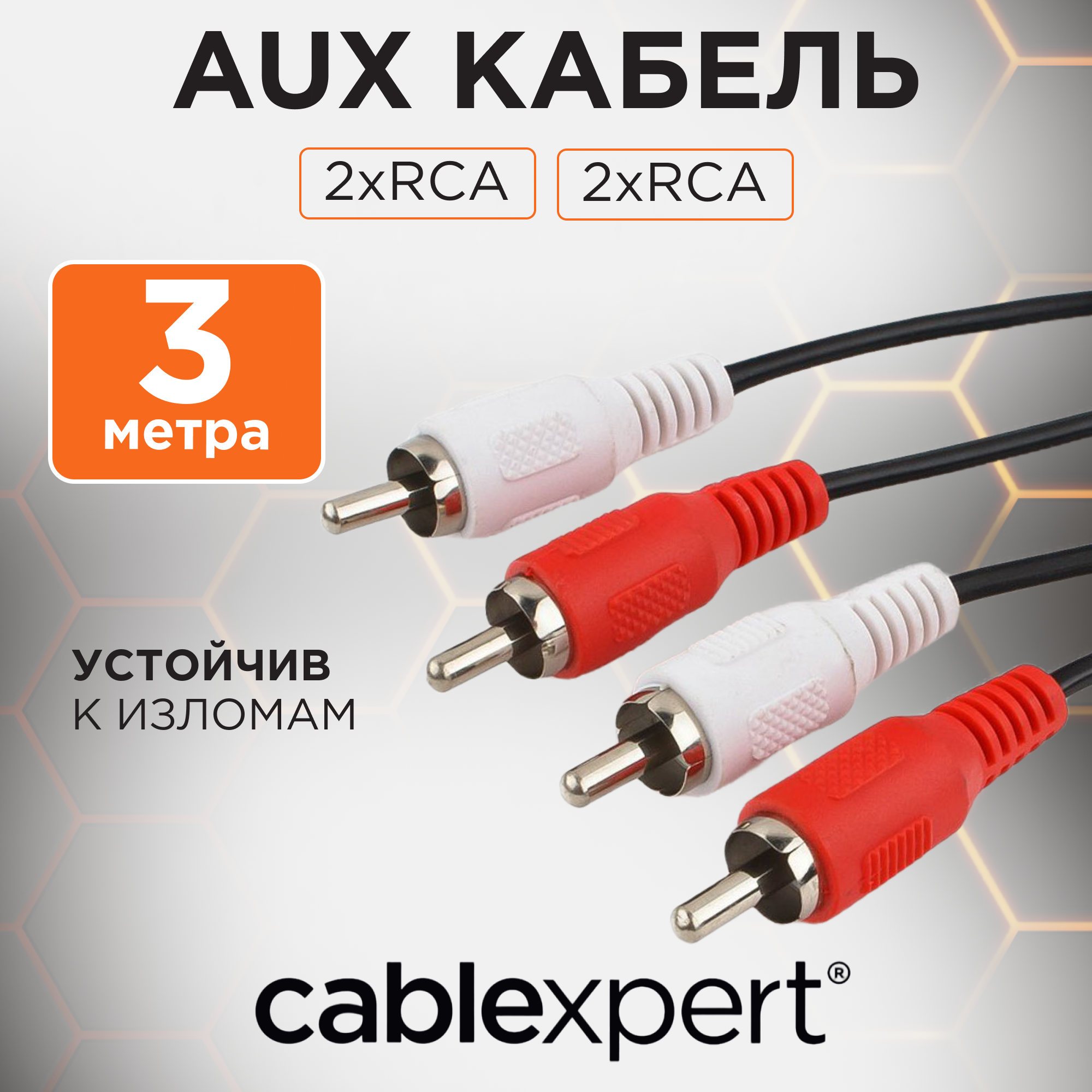 Кабель аудио Cablexpert , 2xRCA / 2xRCA, 3м CCA-2R2R-10