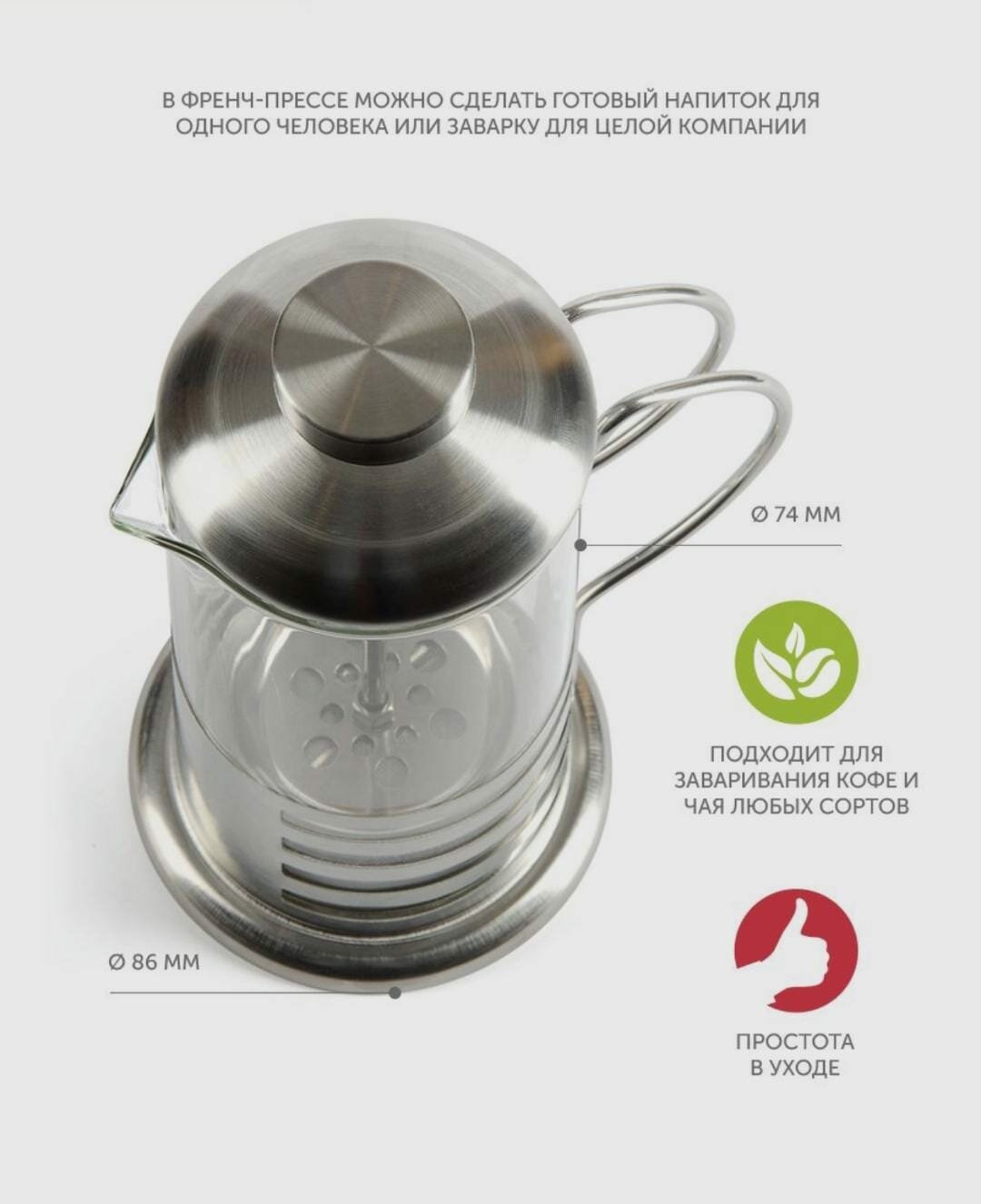 Френч-пресс СчастьеДому 0,35 л серебристый, чайник