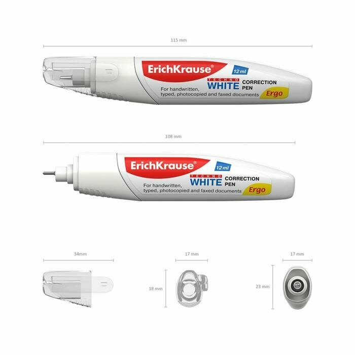 ErichKrause Ручка-корректор 12 мл, Erich Krause TECHNO WHITE Ergo, с металлическим наконечником