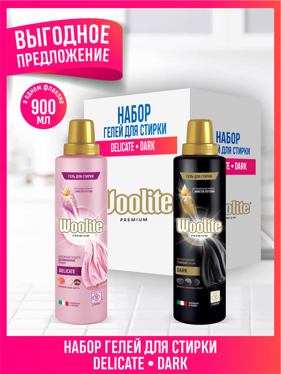 Купить Набор Гелей для стирки Woolite Premium Dark 900 мл. + Delicate 900 мл.