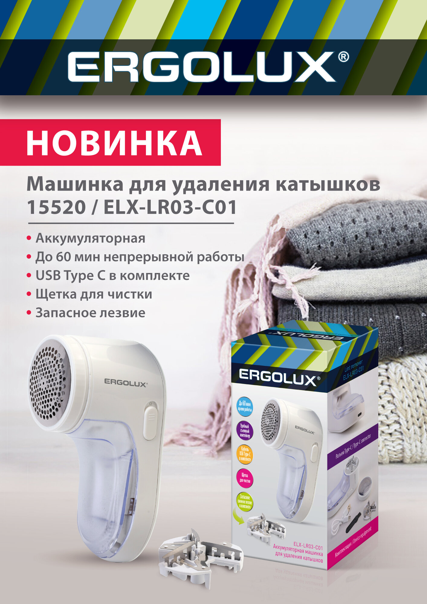 Машинка для удаления катышков Ergolux ELX-LR-01-C40