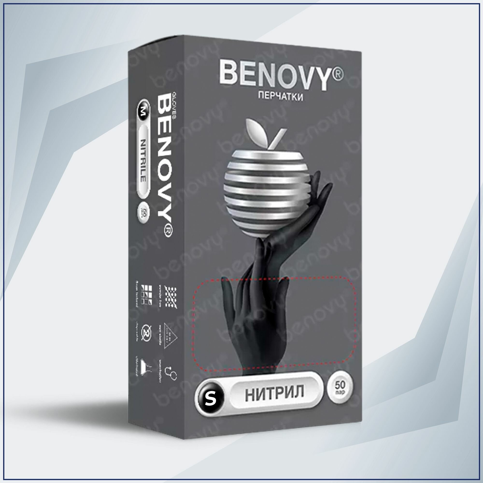 Купить Benovy Перчатки черные нитриловые медицинские 100шт (50 пар) , размер S