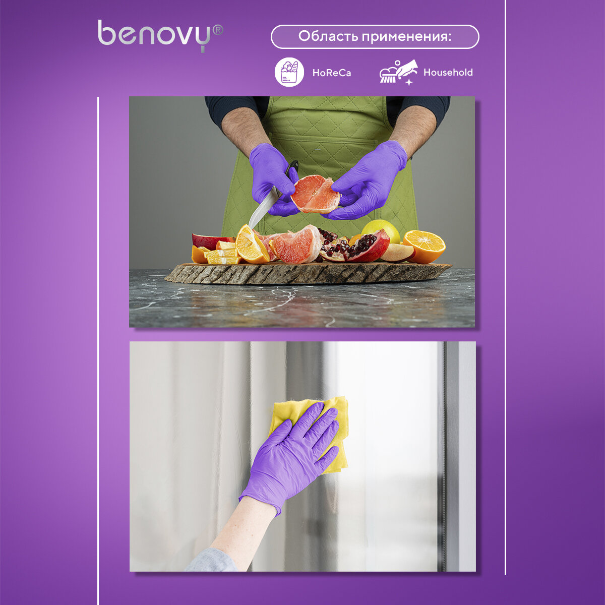Перчатки нитриловые сиреневые BENOVY размер M, 50 пар/упк
