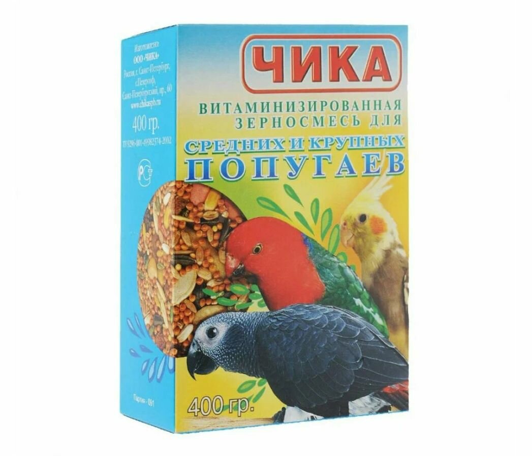 Чика Корм для средних и крупных попугаев Витаминизированная смесь, 400 г интересное: