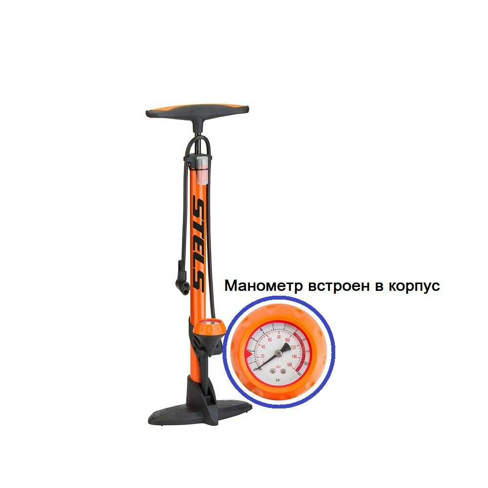 Напольный велонасос STELS ZF-037, металл, оранжевый/черный