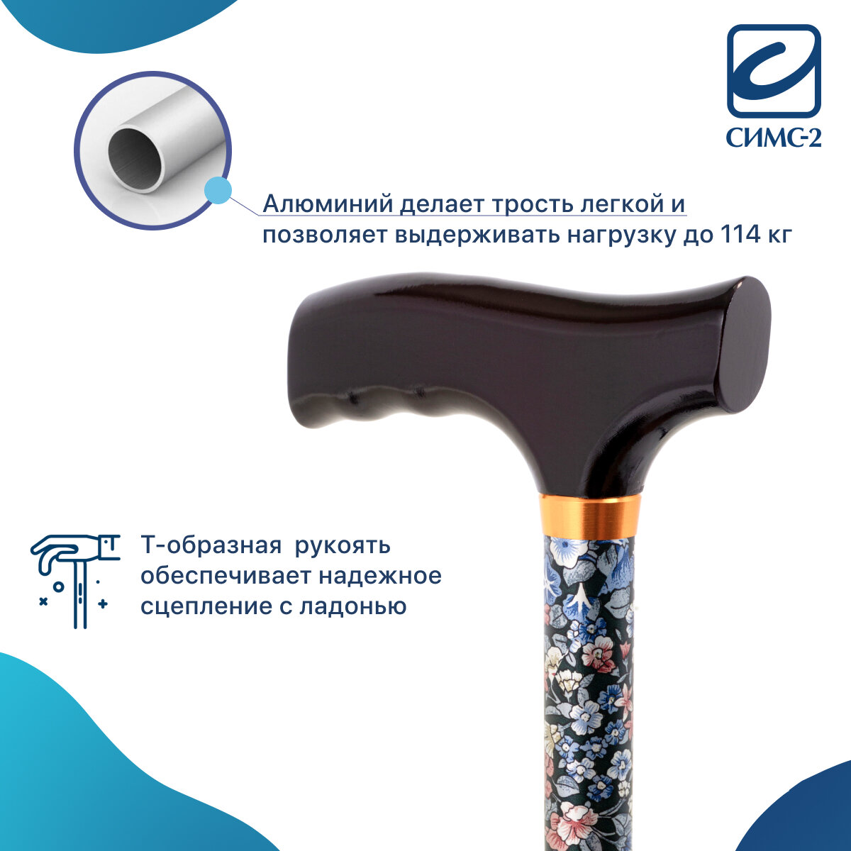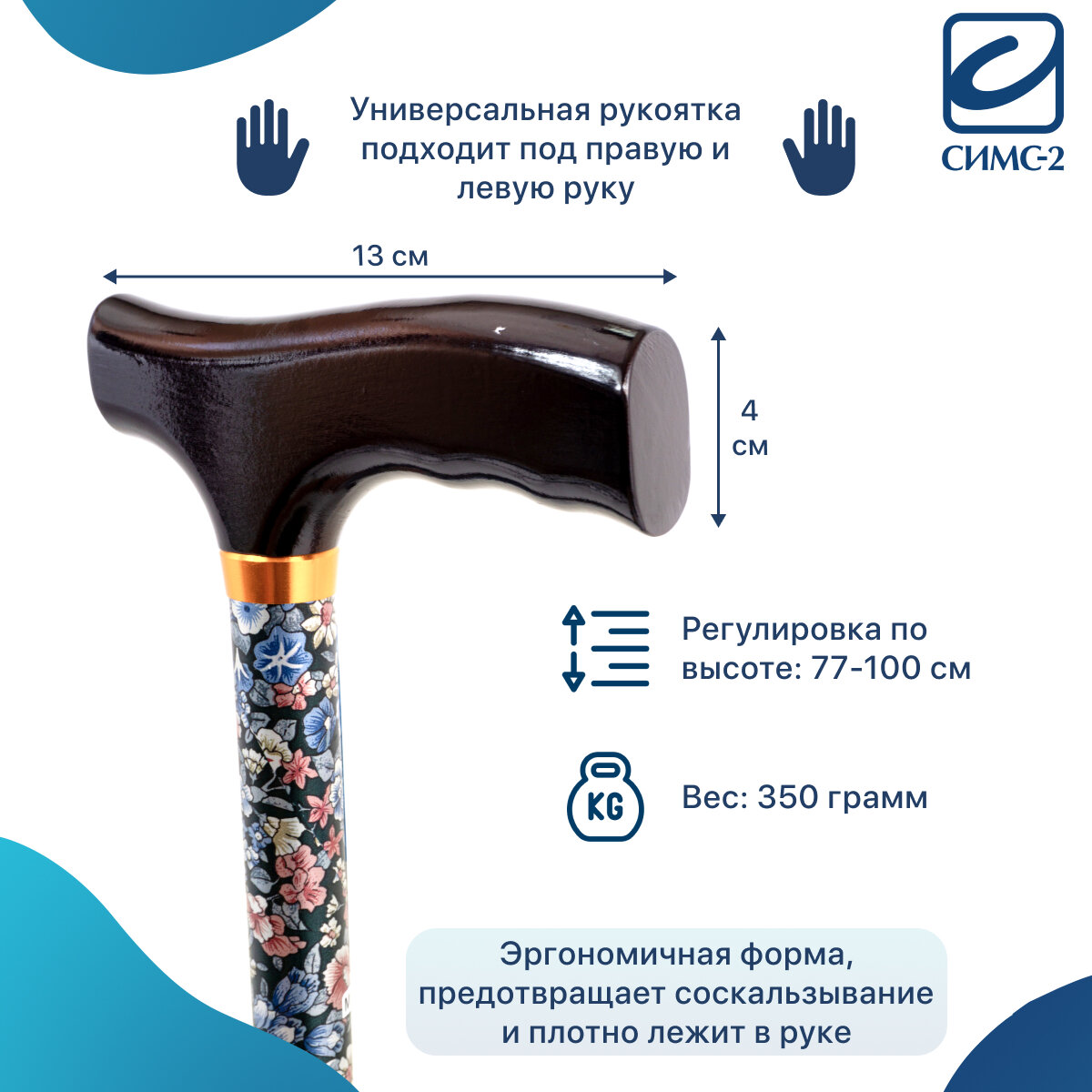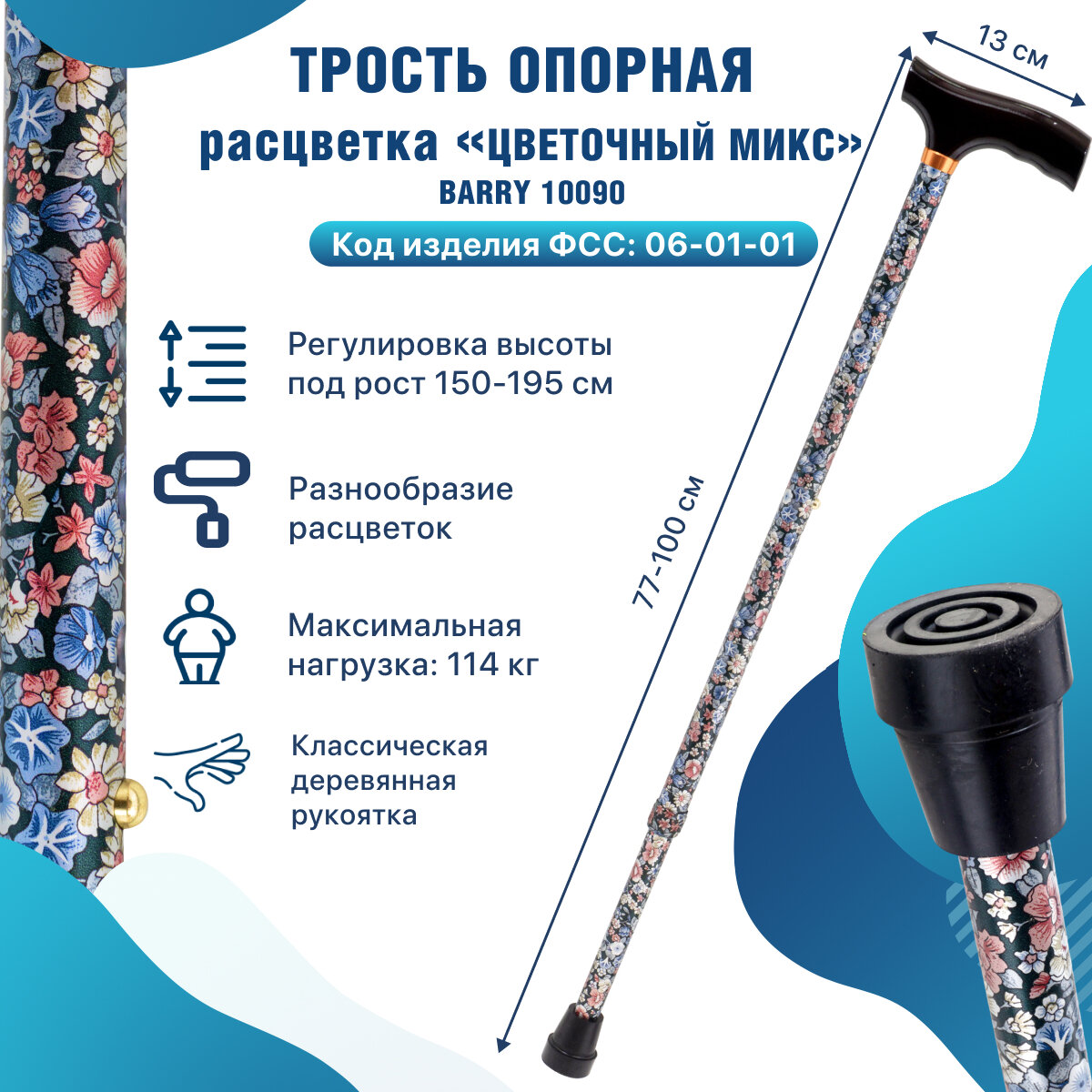 СохранитьТрость для пожилых опорная под рост 150-195 см с деревянной ручкой 10090 Цветочный микс интересное: