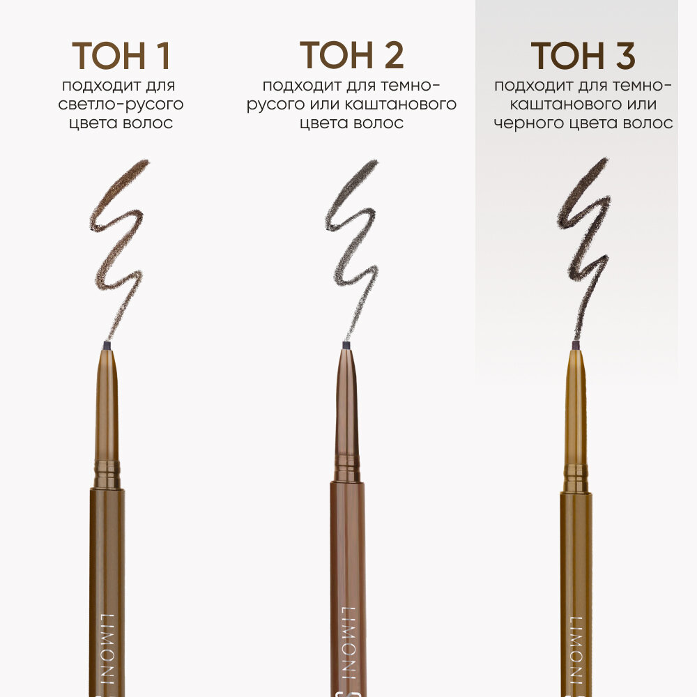 Купить LIMONI Автоматический карандаш для бровей темно-коричневый с щеточкой тон 3, "Super Slim Brow Pencil"